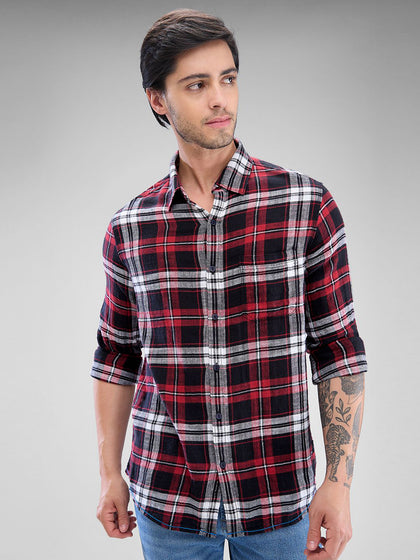 SPYKAR Men Tartan Checks Spread Collar Slim Fit Casual Shirt