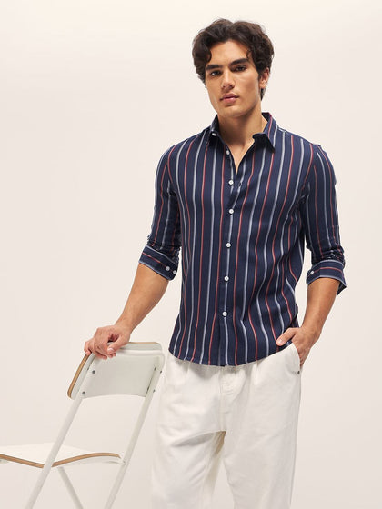 Being Human Men Classic Slim Fit Horizontal Stripes Opaque Striped Casual Shirt