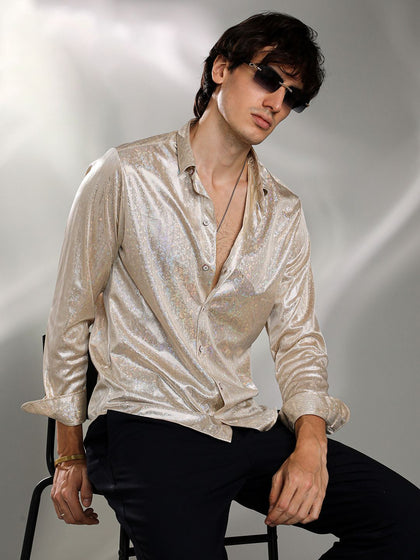 Campus Sutra Self Design Spread Collar Long Sleeves Cotton Comfort Shirt