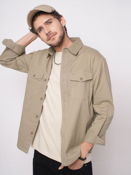 Powerlook Men Collarless Solid Cotton Casual Shirt