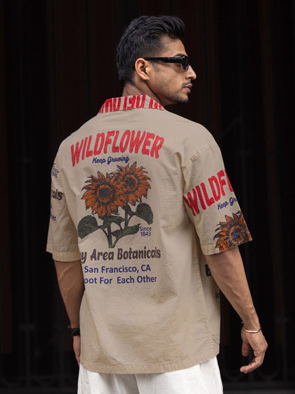 Powerlook Cuban Collar Geometric Printed Pure Cotton Oversized Casual Shirt