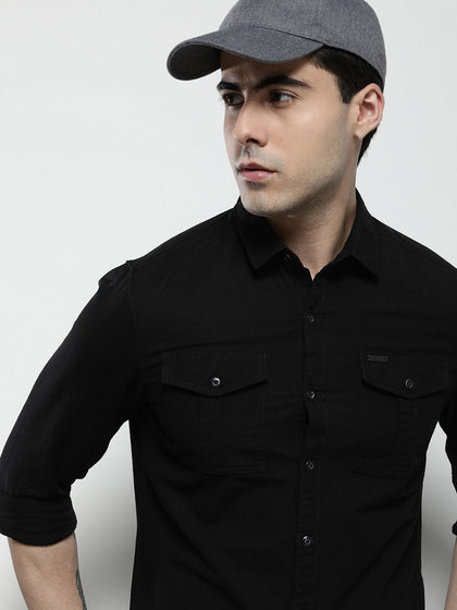 The Indian Garage Co Men Utililty Regular Fit Solid Shirt with Double Flap Pocket