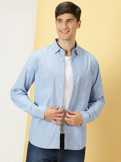 Campus Sutra Men Comfort Fit Textured Spread Collar Casual Shirt