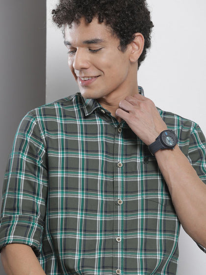 The Indian Garage Co Men Spread Collar Checked Cotton Slim Fit Casual Shirt