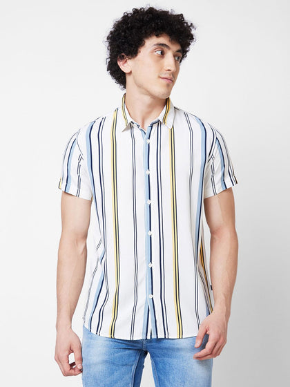 SPYKAR Men Spread Collar Vertical Striped Cotton Casual Shirt