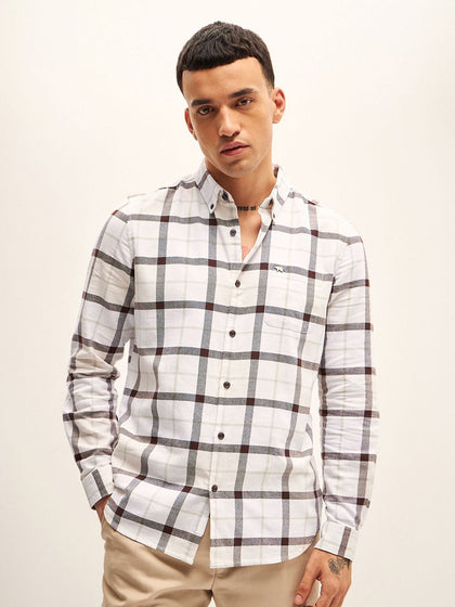The Indian Garage Co Pure Cotton Checked & Textured Relaxed Fit Casual Shirt