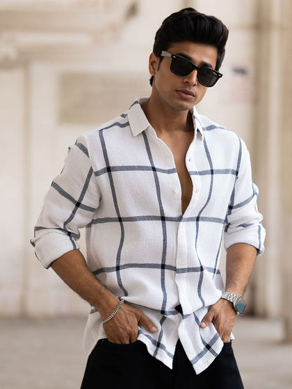 The Indian Garage Co Men Relaxed Fit Checked Dobby Textured Resortwear Shirt
