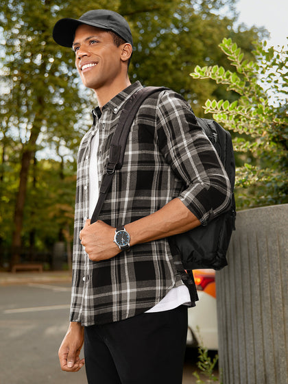 VASTRADO Men Classic Spread Collar Checked Cotton Slim Fit Casual Shirt