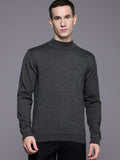 Charcoal grey solid pullover ,has a high crew neck, long sleeves, ribbed hem