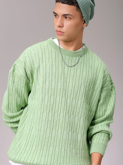The Indian Garage Co Men Self Design Cable Knit Pullover