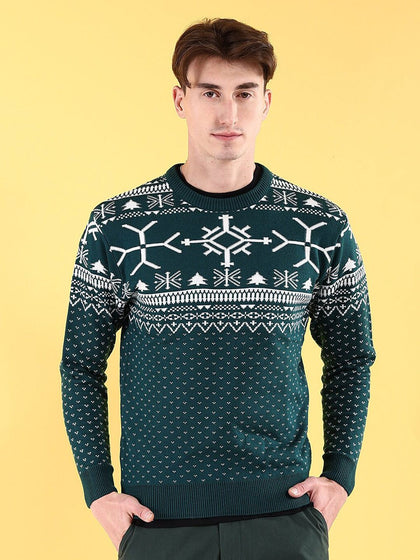 The Indian Garage Co Men Acrylic Graphic Printed Round Neck Pullover Sweaters
