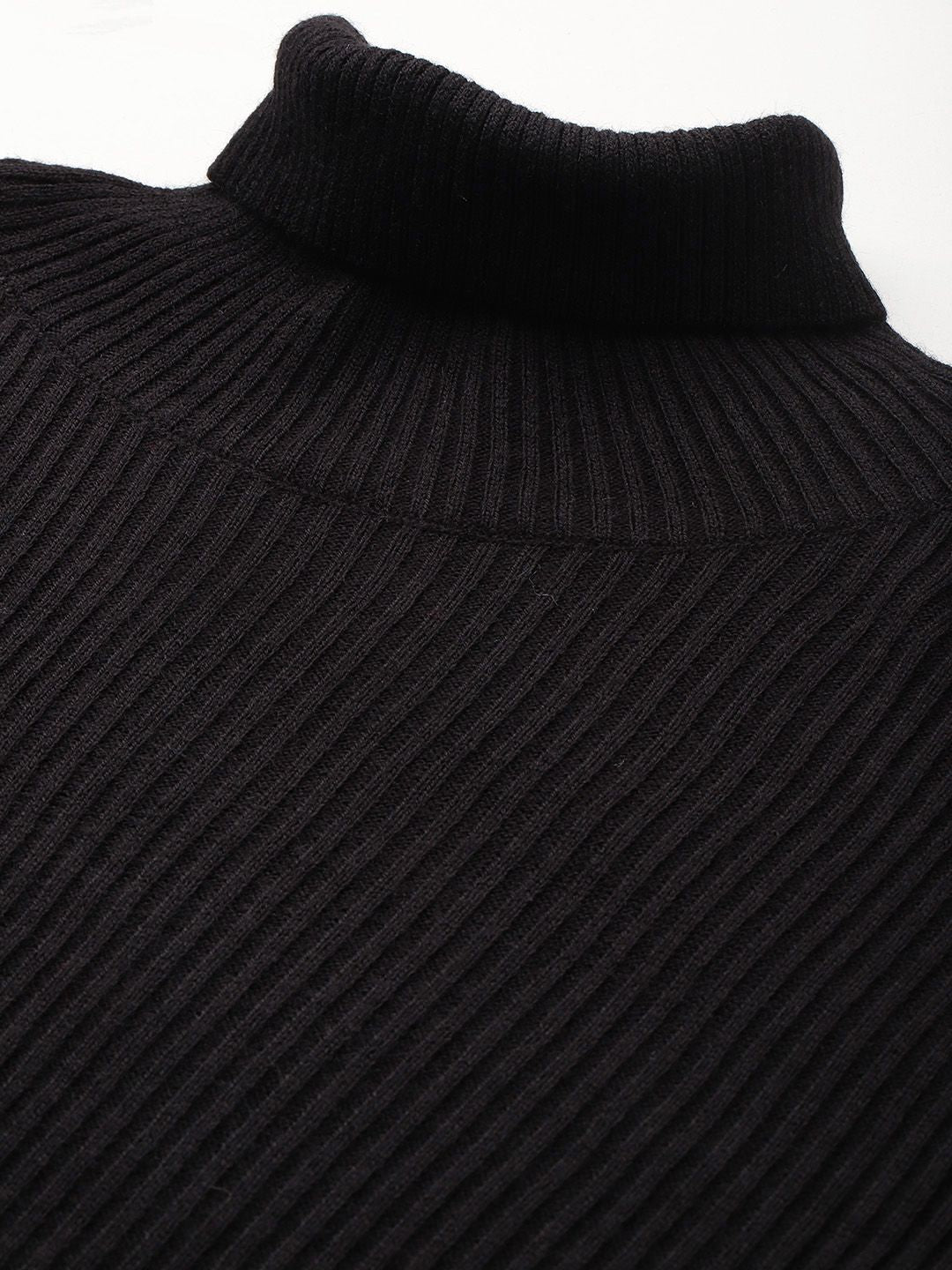 Black solid pullover ,has a turtle neck, long sleeves, straight hem