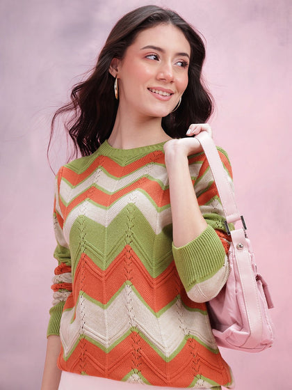 DressBerry Chevron Open Knit Detail Acrylic Pullover
