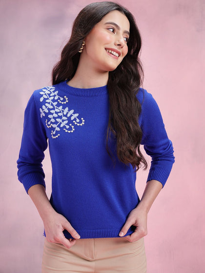 DressBerry Women Floral Embroidered Acrylic Pullover