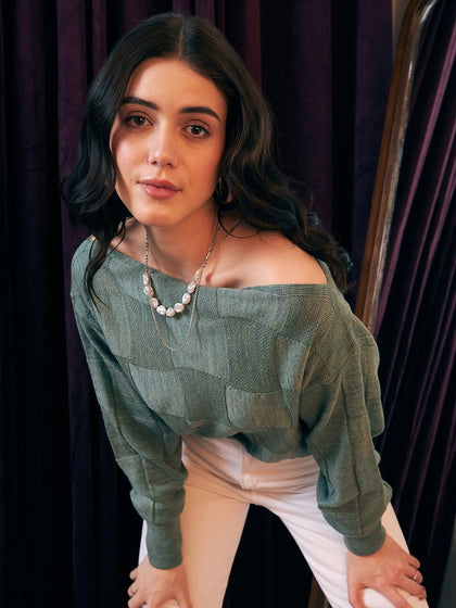 STREET 9 Women Gorgeous Green Geometric Sweater