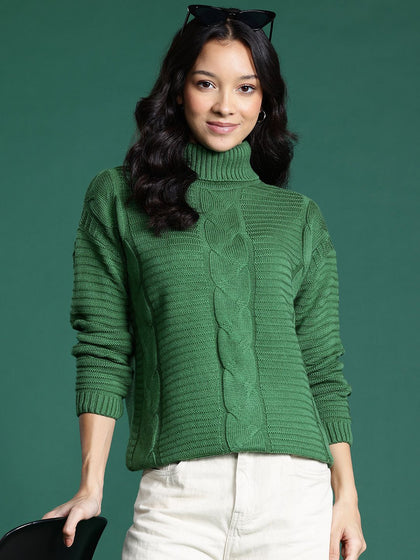 DressBerry Cable Knit Turtle Neck Pullover
