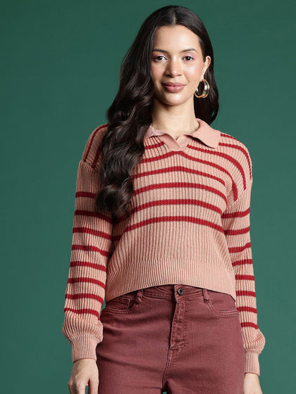 Berrylush Brown Graphic Self Design Acrylic Pullover Sweater