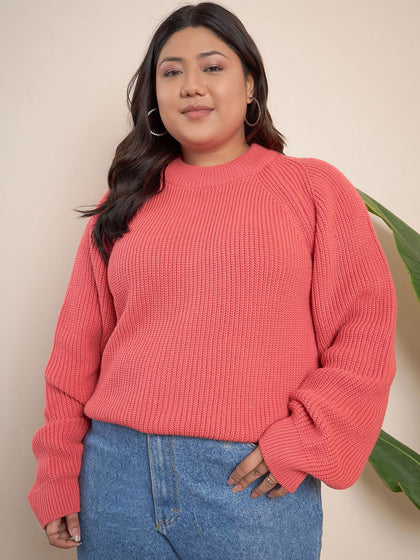 CURVY STREET Plus Size Round Neck Acrylic Pullover