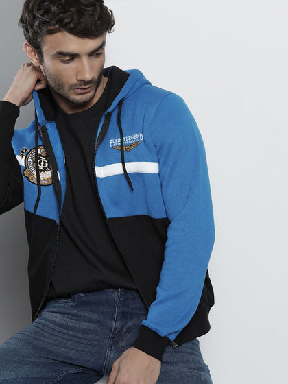 The Indian Garage Co Men Blue Colourblocked Hooded Sweatshirt