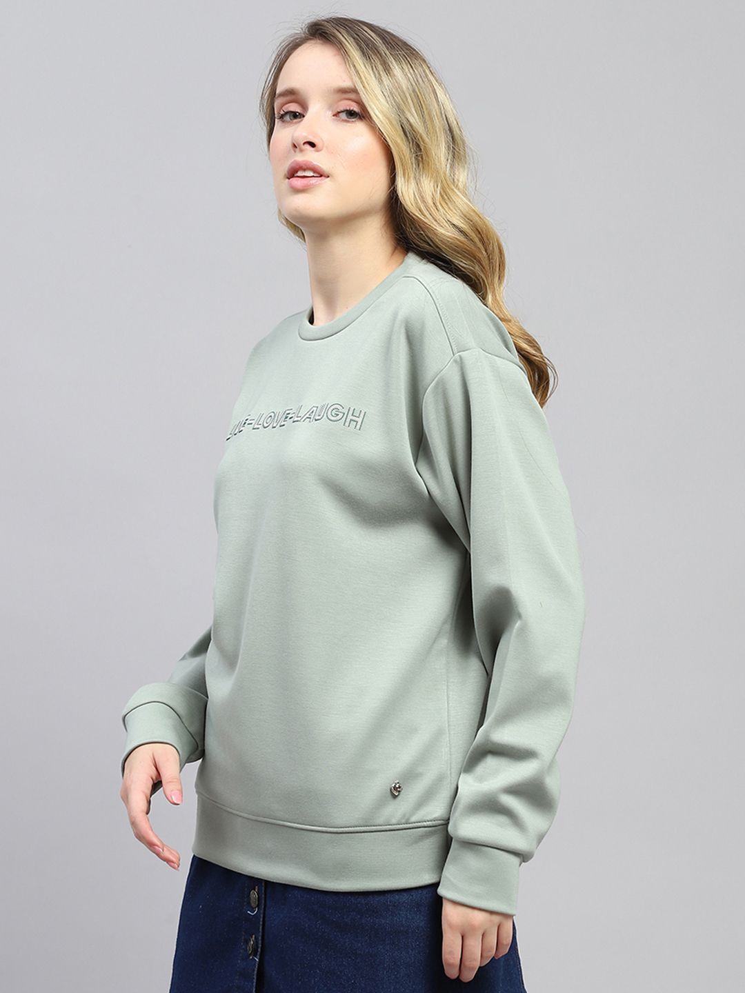 Green typography printed sweatshirt has a round neck, long drop shoulder sleeves, straight hem