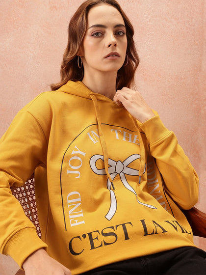 DressBerry Conversational Printed Drop-Shoulder Sleeve Hooded Sweatshirt