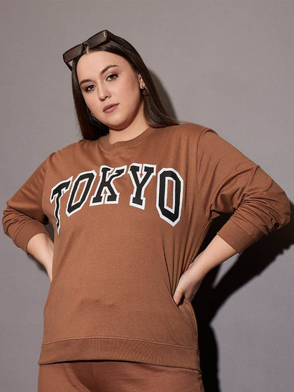 SASSAFRAS Curve Women Cotton Round Neck Plus Size Typography Printed Sweatshirt