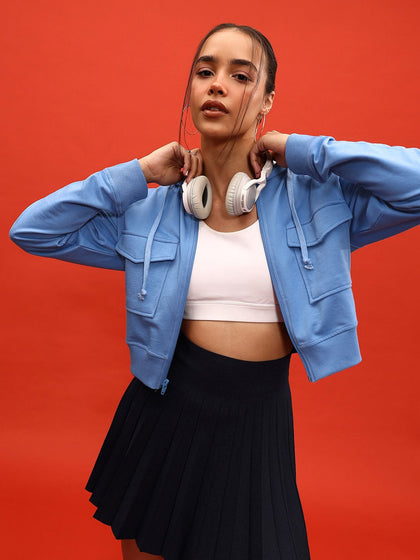 STREET 9 Women Purple Solid Hooded Crop Sweatshirt