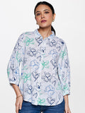 AND Floral Printed Cuffed Sleeves Shirt Style Top