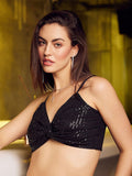 Athena Black Embellished Shoulder Straps Bling & Sparkly Bralette Top