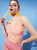 Athena Peach Abstract Twist & Knot Top
