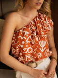 DressBerry Geometric Print One Shoulder Top