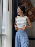SASSAFRAS Blue & White Striped Rib Crop Top