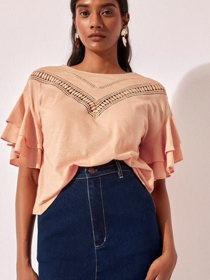 DressBerry Crinkled Cheesecloth Textured Lace Insert Top