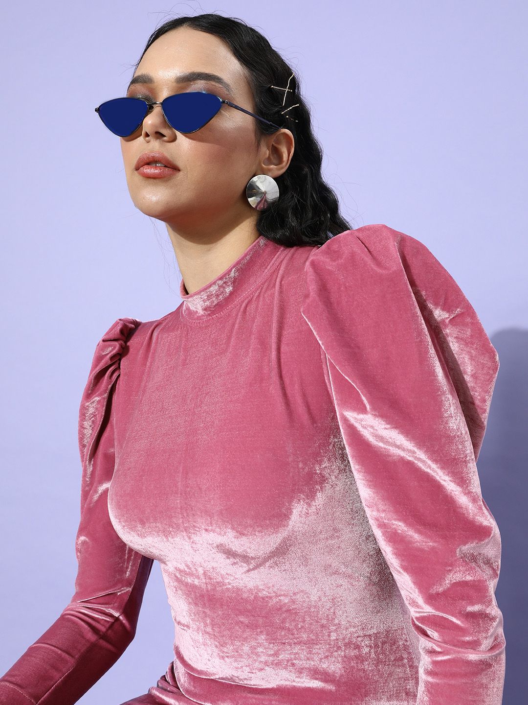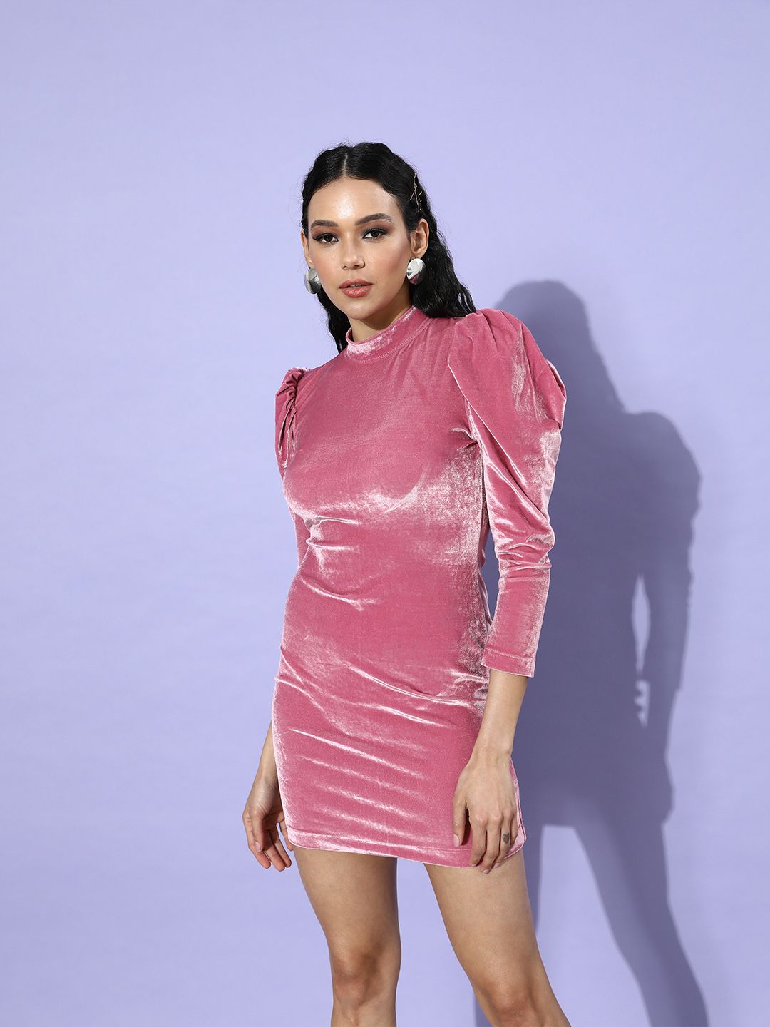 STREET 9 Women Pretty Pink Solid Velvet Dress