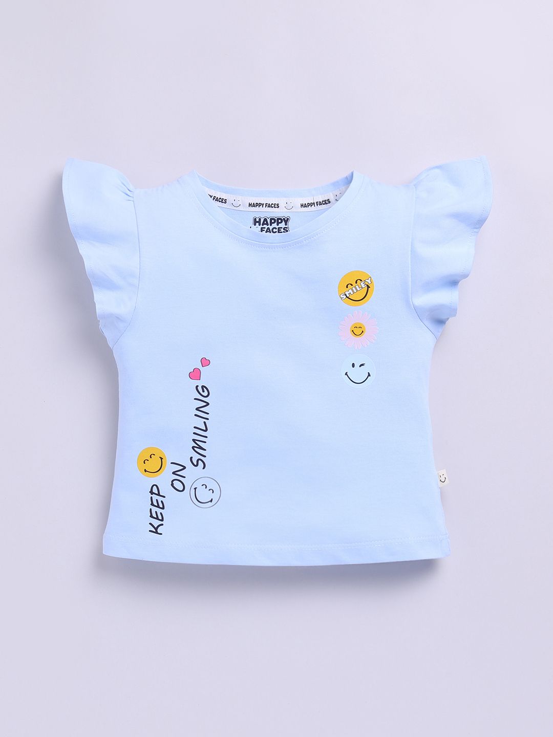 Happy Faces Girls Smiley Printed Pure Cotton Top