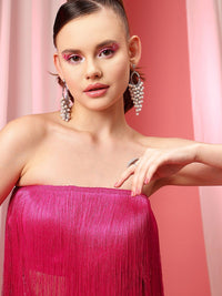 STREET 9 Fuchsia Strapless Satin Fringed Tube Crop Top