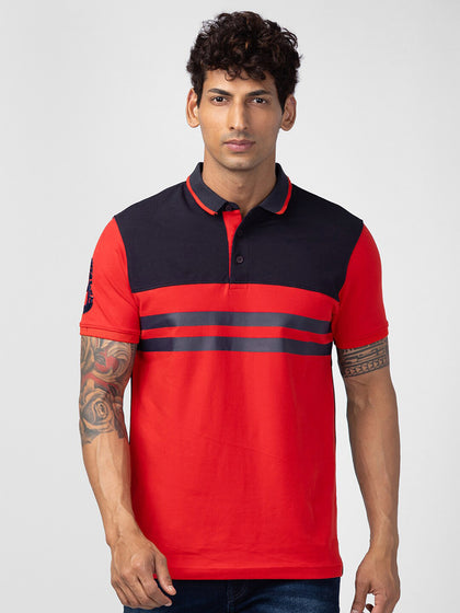 SPYKAR Men Colourblocked Polo Collar Slim Fit T-shirt