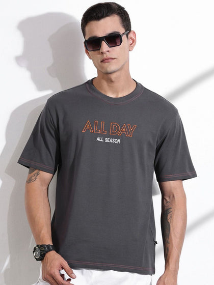 The Indian Garage Co Men Typography Printed Round Neck Cotton Oversized T-Shirt