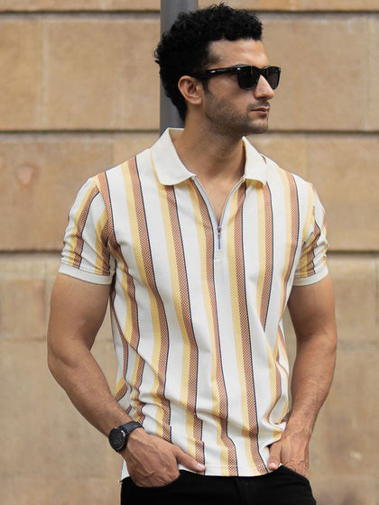 Park Avenue Striped Polo Collar Slim Fit T-shirt