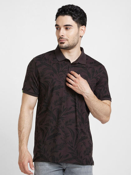 SPYKAR Floral Printed Polo Collar Slim Fit T-shirt