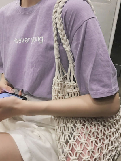 DressBerry Typo Trend Printed Drop-Shoulder Sleeves Crop Boxy T-shirt