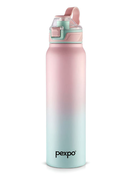 Pexpo Pink & Green Colourblocked Stainless Steel Double Wall Vacuum Water Bottle-740 ml