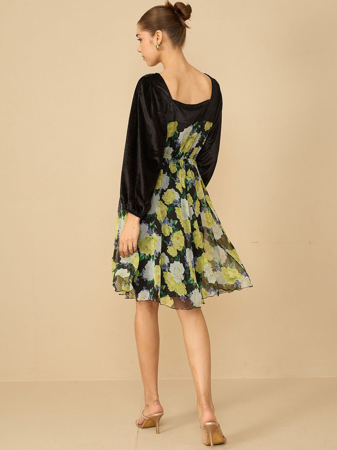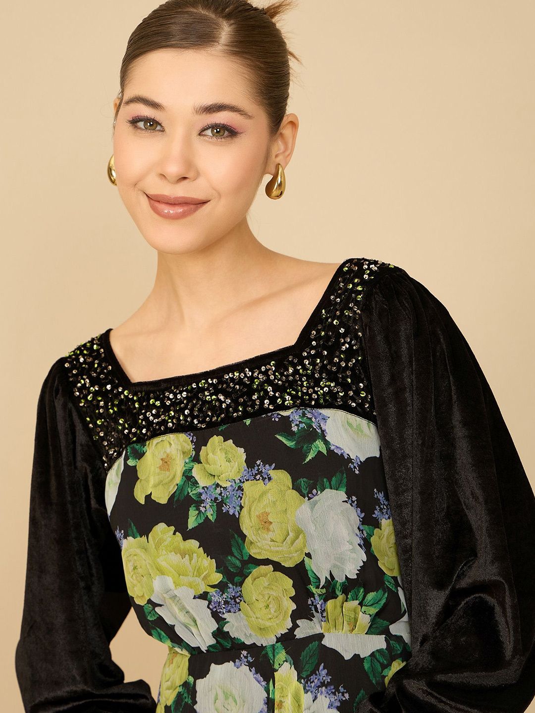 Antheaa Floral Printed Embellished Fit & Flare Dress