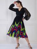 Antheaa Women Puff Sleeve Midi Wrap Dress