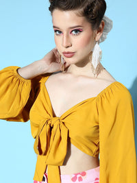Berrylush Women Stylish Mustard Solid Wrap It Up Top