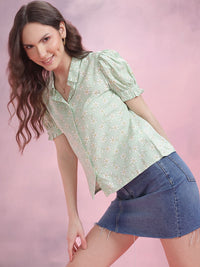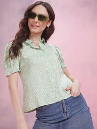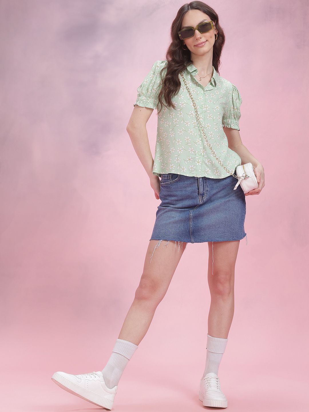 DressBerry Floral Print Puff Sleeve Shirt Style Top