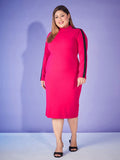 SASSAFRAS Curve Plus Size Fuchsia Long Sleeves Sheath Midi Dress