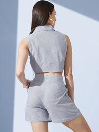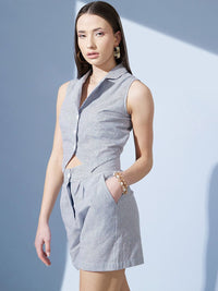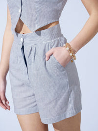STREET 9 Striped Shirt Collar Pure Cotton Coat & Mid-Rise Shorts
