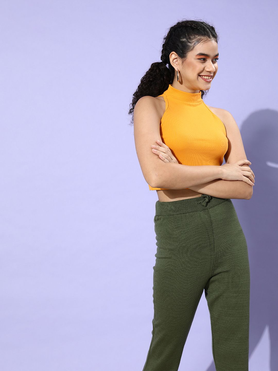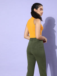 STREET 9 Woman Bright Yellow Solid Cropped Top