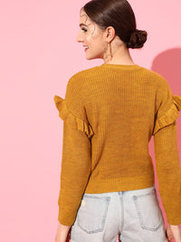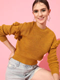 STREET 9 Women Mustard Round Neck Long Sleeves Acrylic Pullover